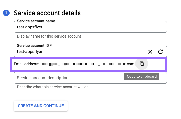 Save the JSON key file, which will be uploaded to AppsFlyer later.