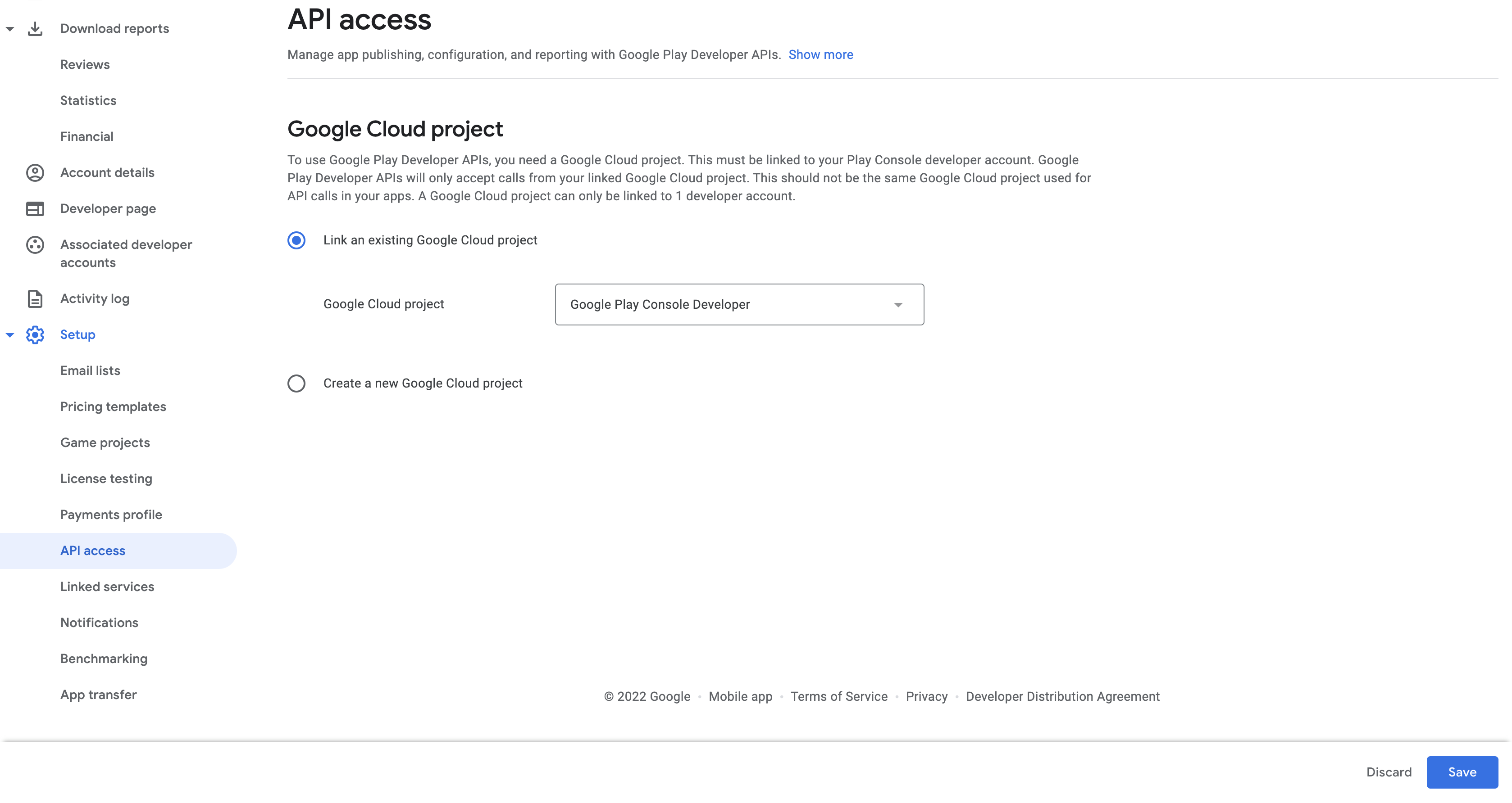 Step 1. link your Google Play Developer Account to Google Cloud Project