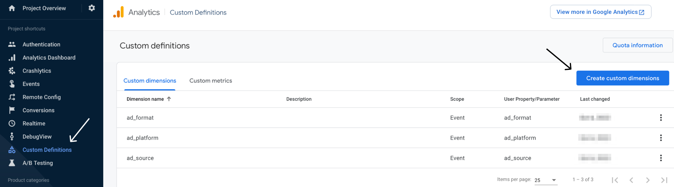 - For comfortable navigation and observation of event parameters, please complete the next steps only after you receive the custom_ad_impression event on the Firebase side: