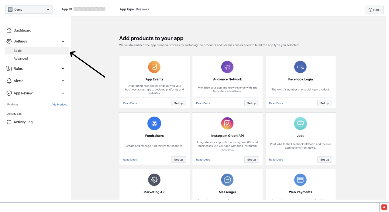 Go to app’s Dashboard and click Set Up for** Audience Network**.