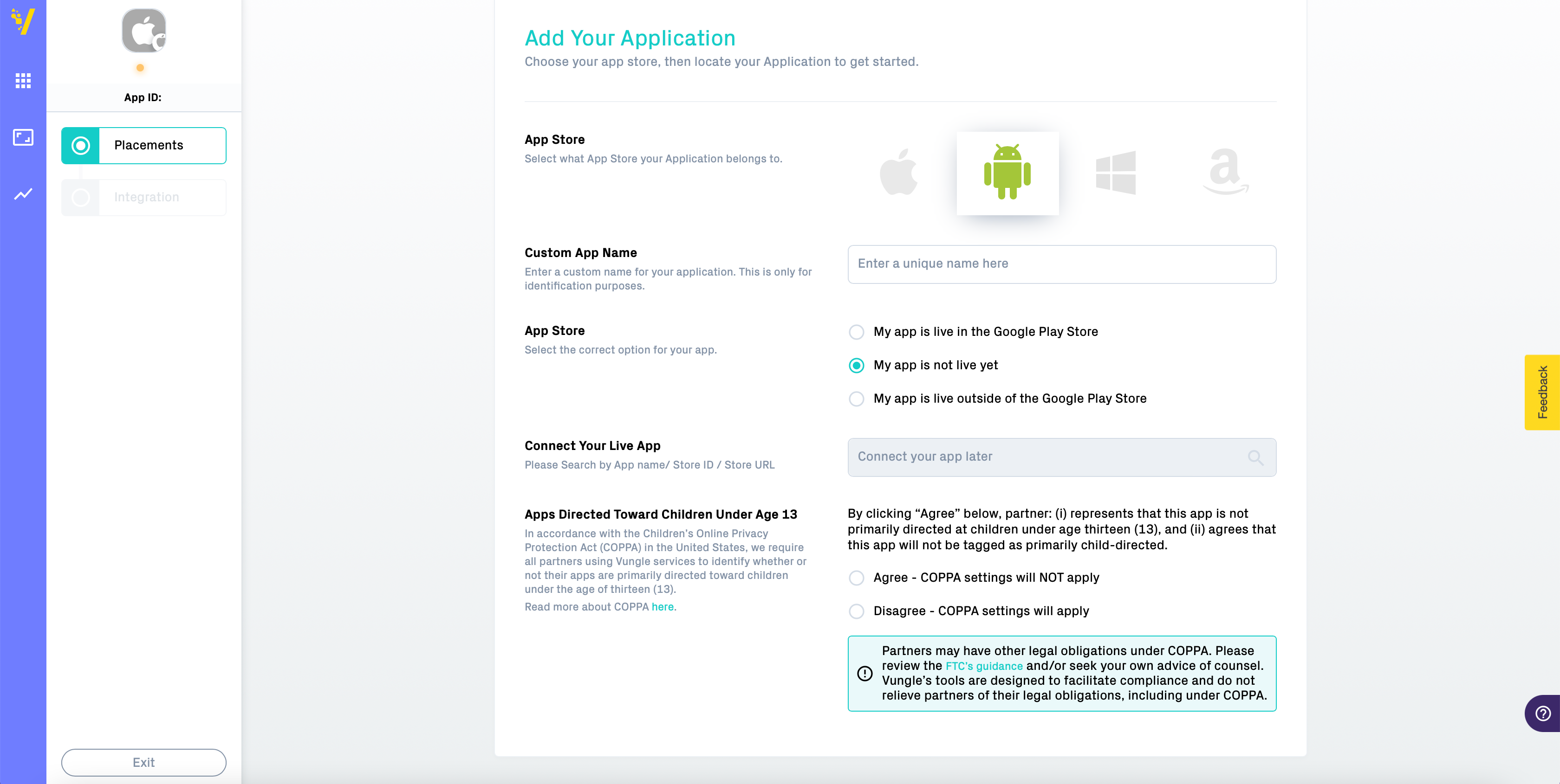 - If the app is not live yet, you will receive test ads. You can connect the store link at any time later in the app’s settings.