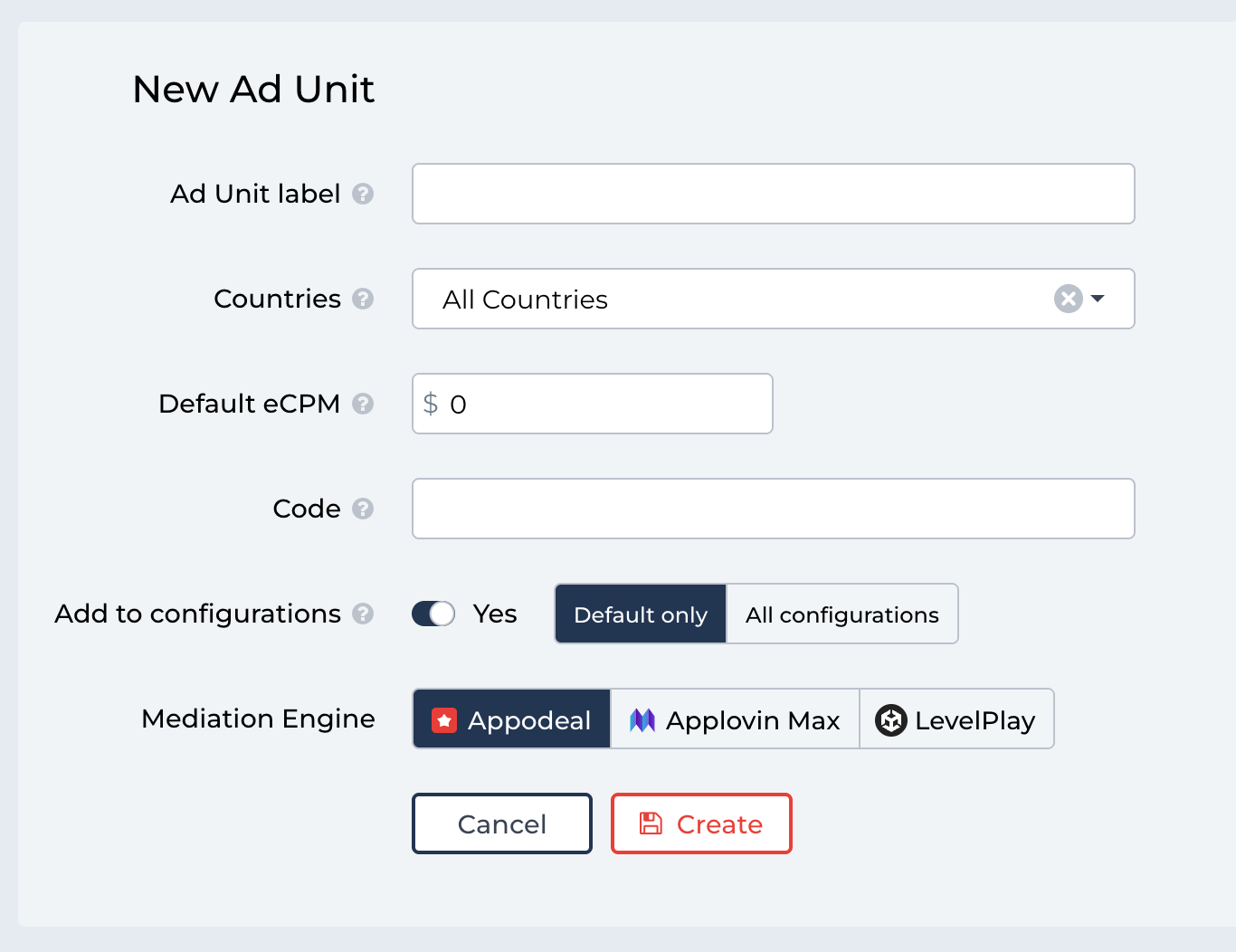 For every Ad Unit (including those created by Appodeal), you can specify the countries where this Ad Unit will be added to the “waterfall”. Choose countries from the list for even more precise targeting.