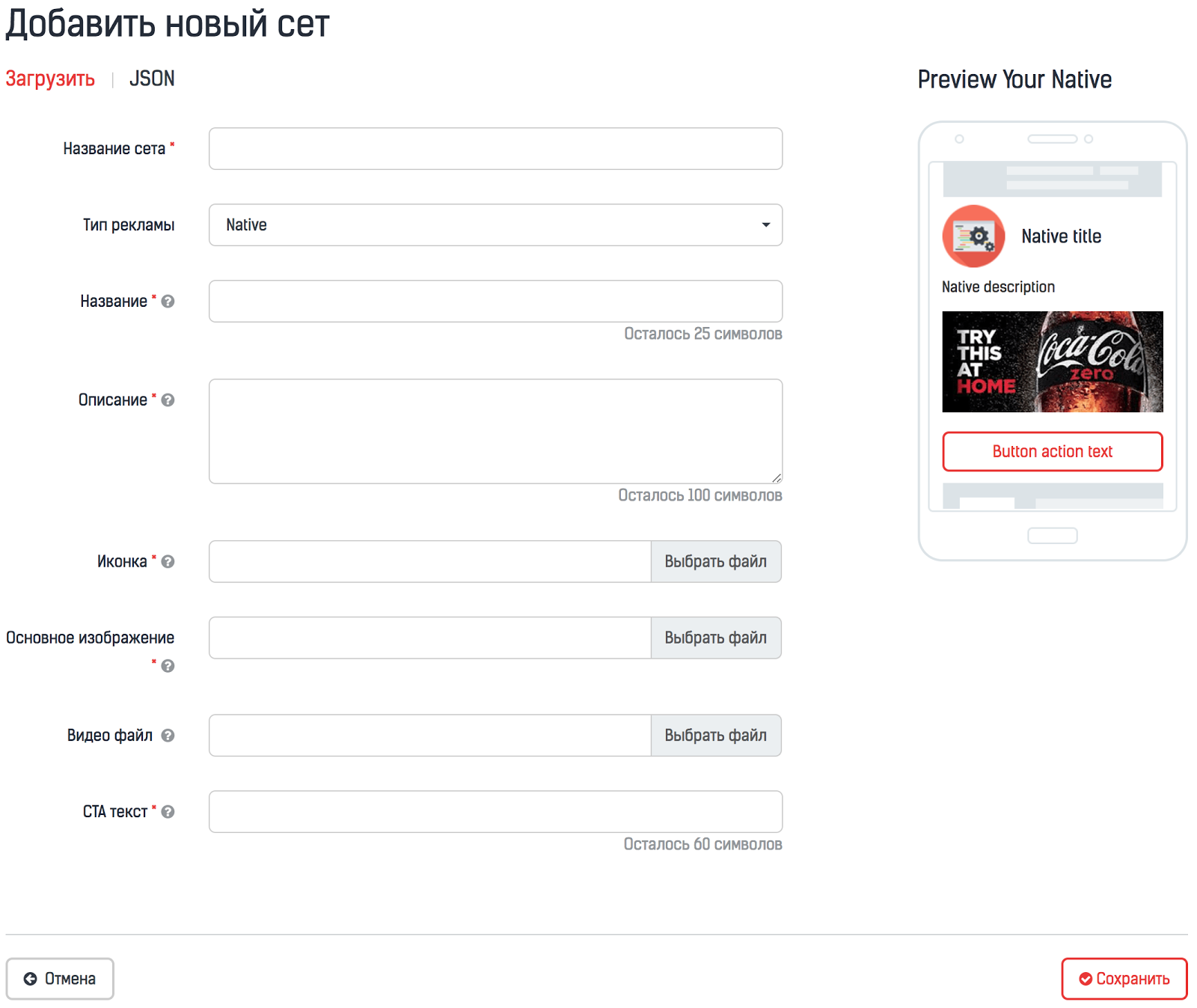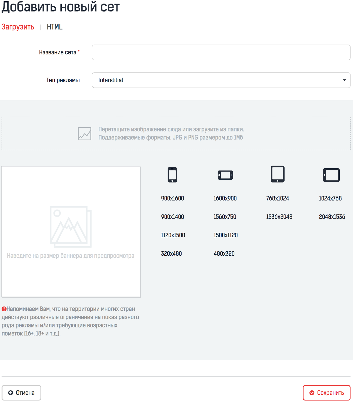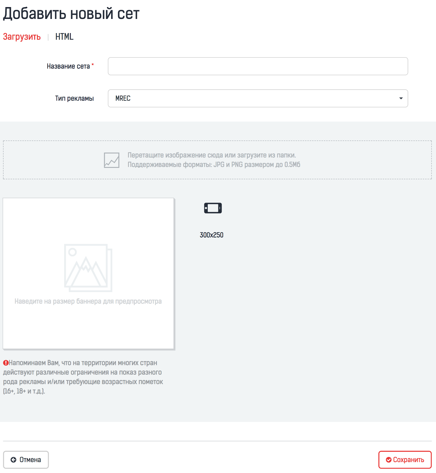 Каждый тип рекламы имеет свои опции, ограничения и размеры.