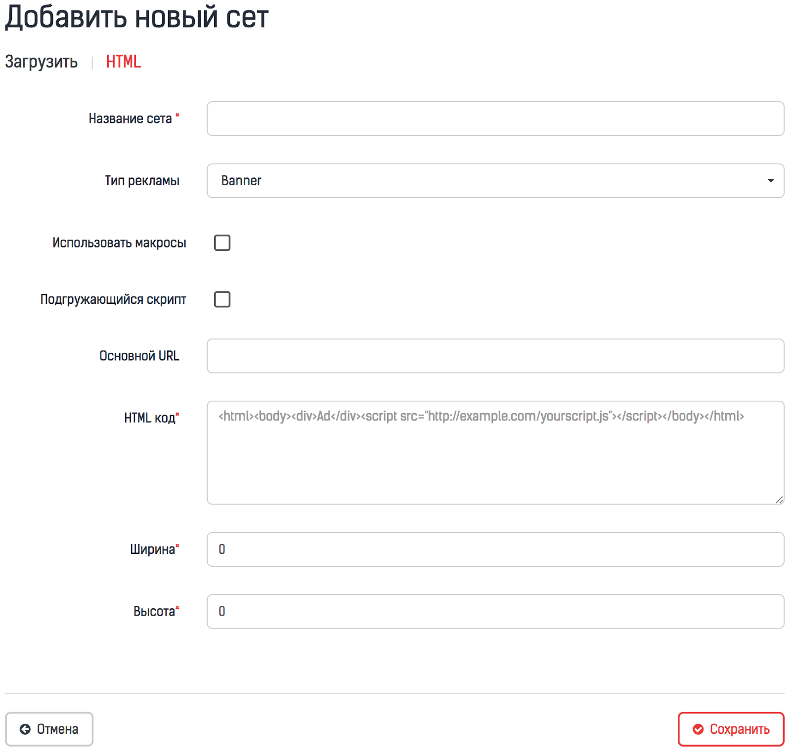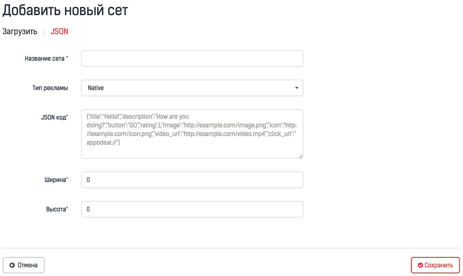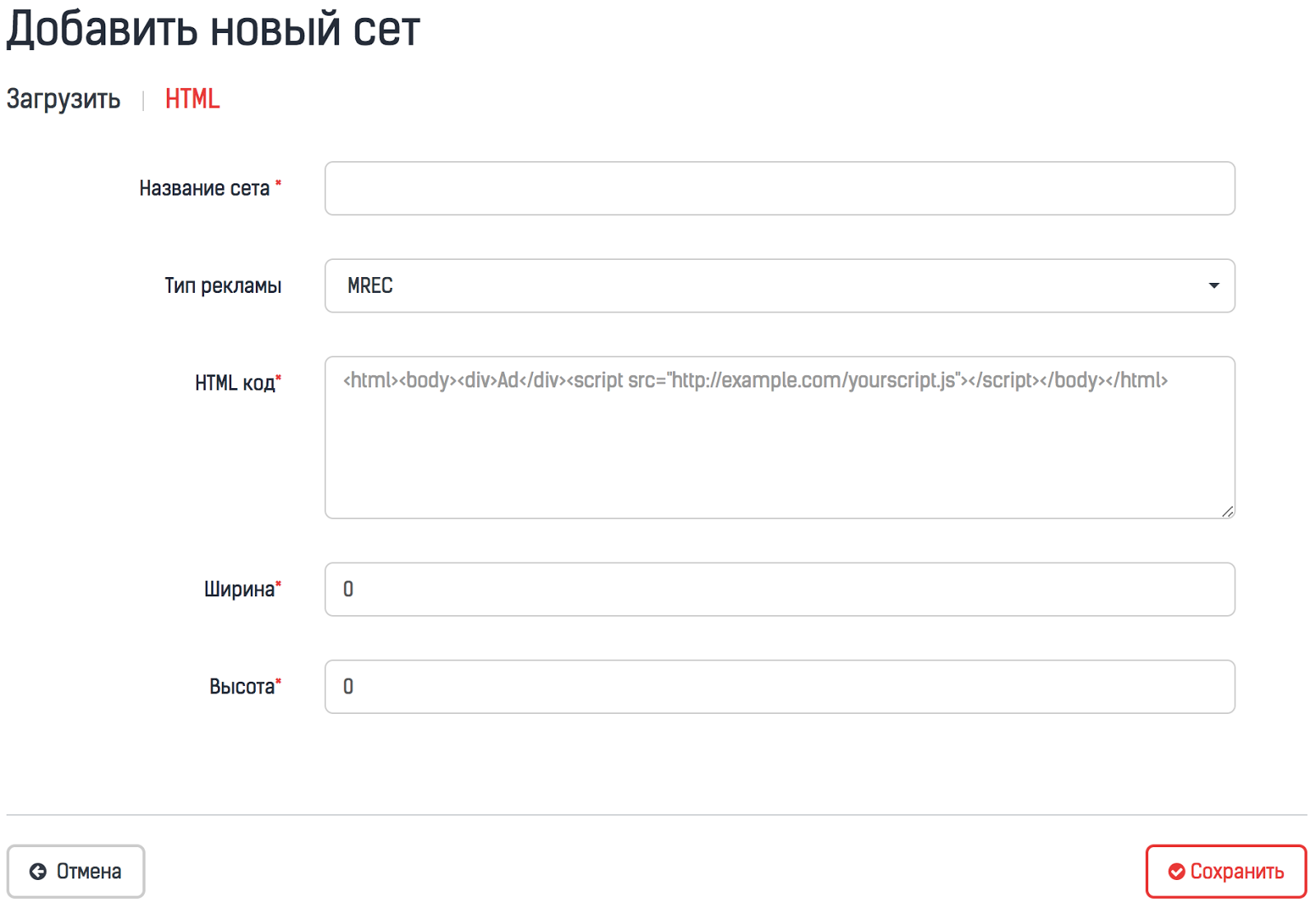 - Рекламный Сет (вы можете создать новый рекламный сет или выбрать уже существующий);