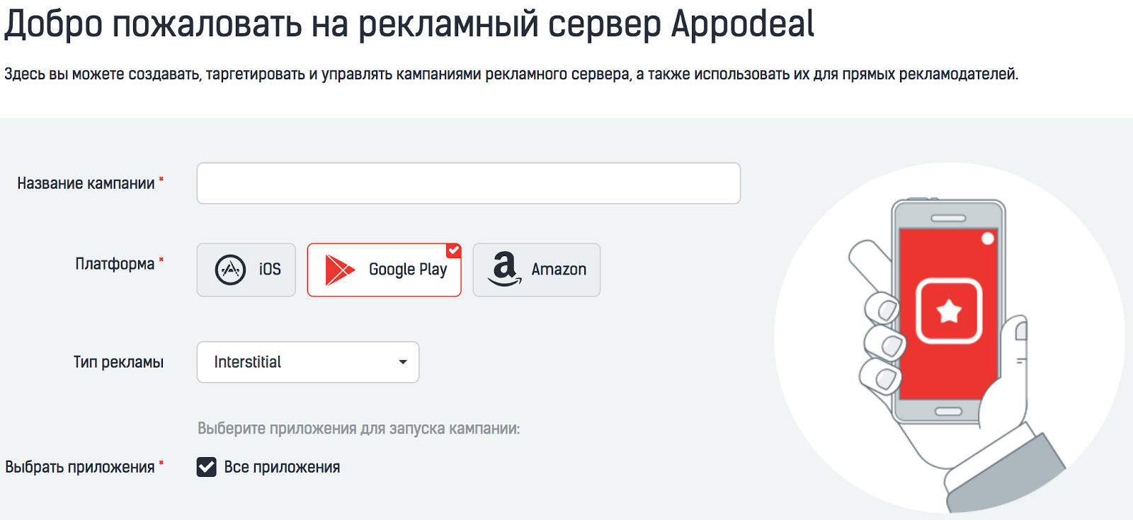 Рекламный сервер позволяет рекламировать ваши приложения или запускать рекламные кампании для прямых рекламодателей. Этот сервис позволяет использовать различные виды рекламы: баннеры, полноэкранная реклама, MREC, видео за вознаграждение и натив ная реклама.
