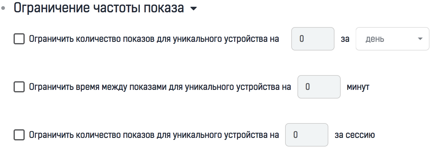 - ограничить количество показов для уникального устройства до ... за сессию;