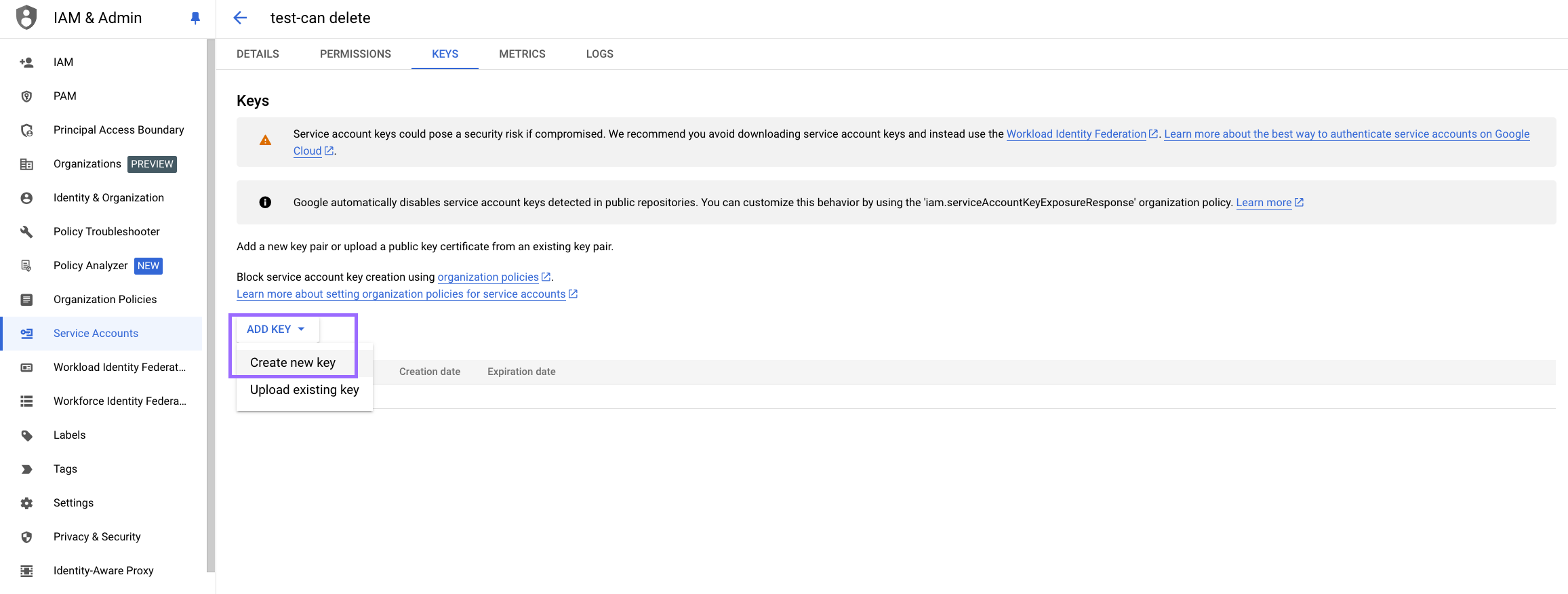 3. Перейдите в ваш service account и нажмите keys → Add key → выберите JSON → отправьте нам файл JSON на электронную почту support@appodeal.com или в чате.