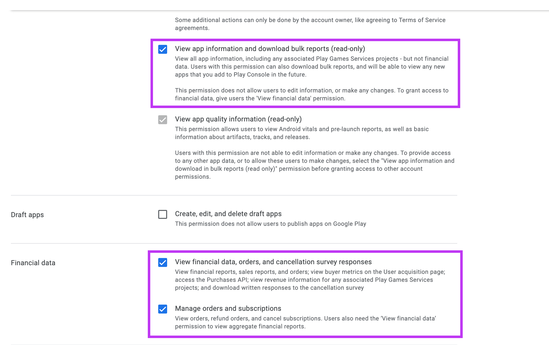 Шаг 3. Настройка разрешений доступа к API в Google Play Console