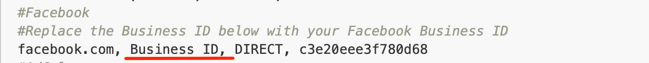 2. Скопируйте ваш Meta Business Manager ID и поменяйте “Business ID” на него в вашем файле app-ads.txt.