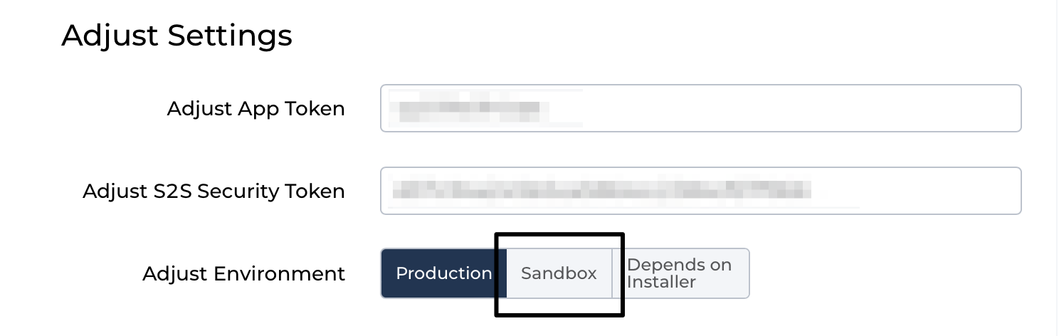 1. Перейдите по пути App Settings → Attribution Settings и измените Adjust Environment с Production на Sandbox, чтобы протестировать валидацию покупок и не забудьте нажать Save в конце страницы.