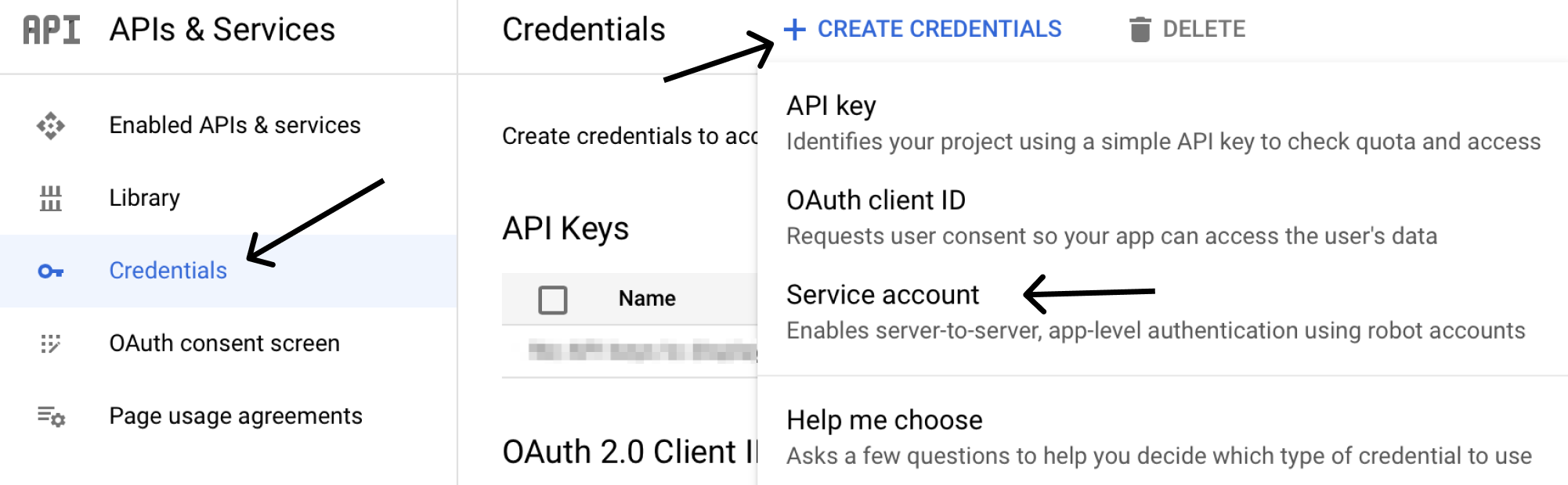 1. Перейдите в ваш service account и нажмите keys → Add key → choose JSON and отправьте нам файл JSON на электронную почту support@appodeal.com или в чате.